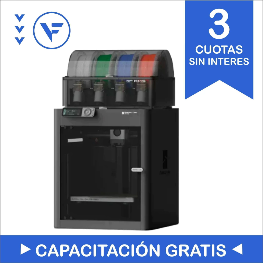 La serie P1 de Bambu Lab combo ofrece impresión 3D multicolor con hasta 16 colores mediante el sistema automático de materiales (AMS). Su estuche oficial facilita el uso de filamentos avanzados, y la calidad de impresión es de nivel laboratorio. Con una aceleración de hasta 20,000 mm/s² y velocidad máxima de 500 mm/s, el sistema CoreXY garantiza impresiones rápidas y precisas. Su extrusor directo mejora el control de filamentos flexibles, y el sensor de nivelación automática asegura una primera capa perfecta. Además, cuenta con recuperación de impresión, sensor de agotamiento de filamento, y una cámara incorporada para supervisión en tiempo real.