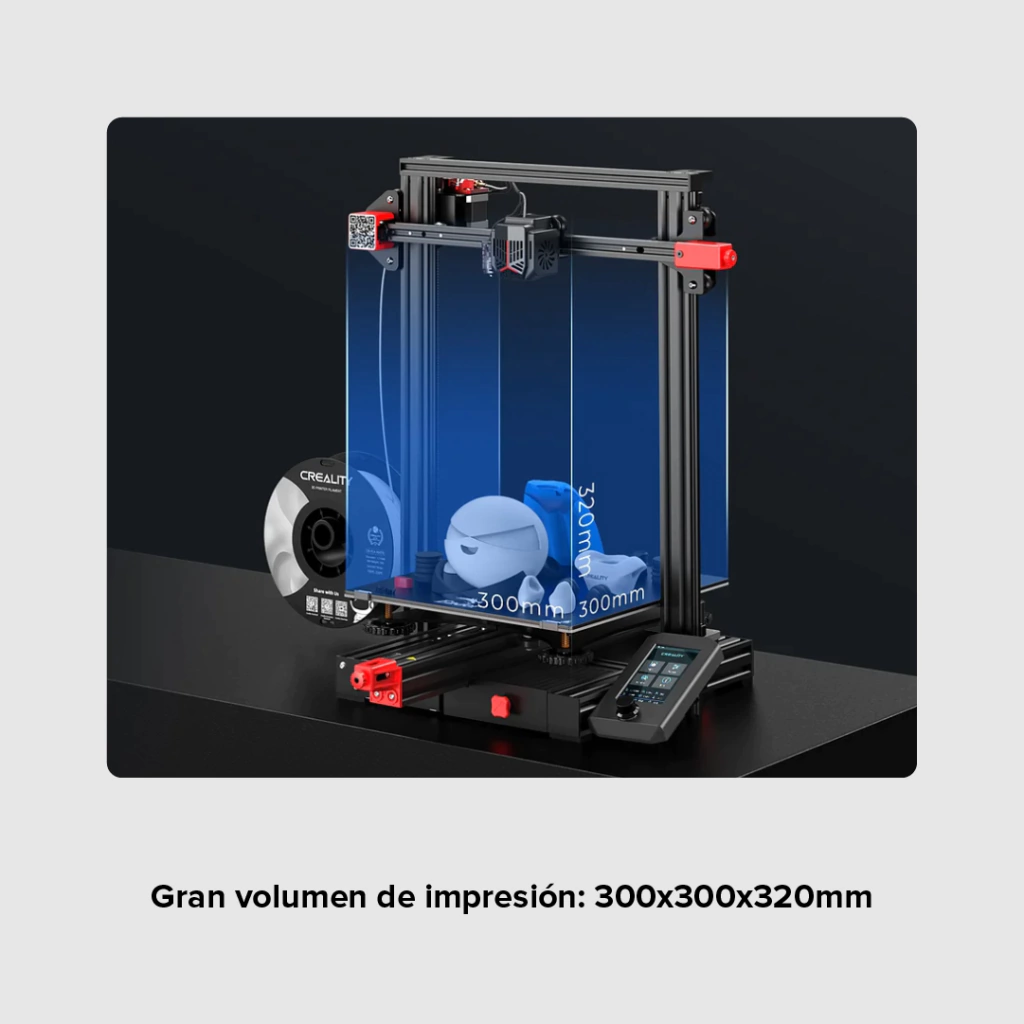 La Ender 3 Max Neo es una versión mejorada de la Ender 3 Max. El volumen de construcción de 300x300x320mm, permite a la impresora 3D Ender 3 Max Neo, crear impresiones de modelos grandes y la impresión de piezas pequeñas, al mismo tiempo, mejorando así la eficiencia y ofreciendo más posibilidades de creación de productos.